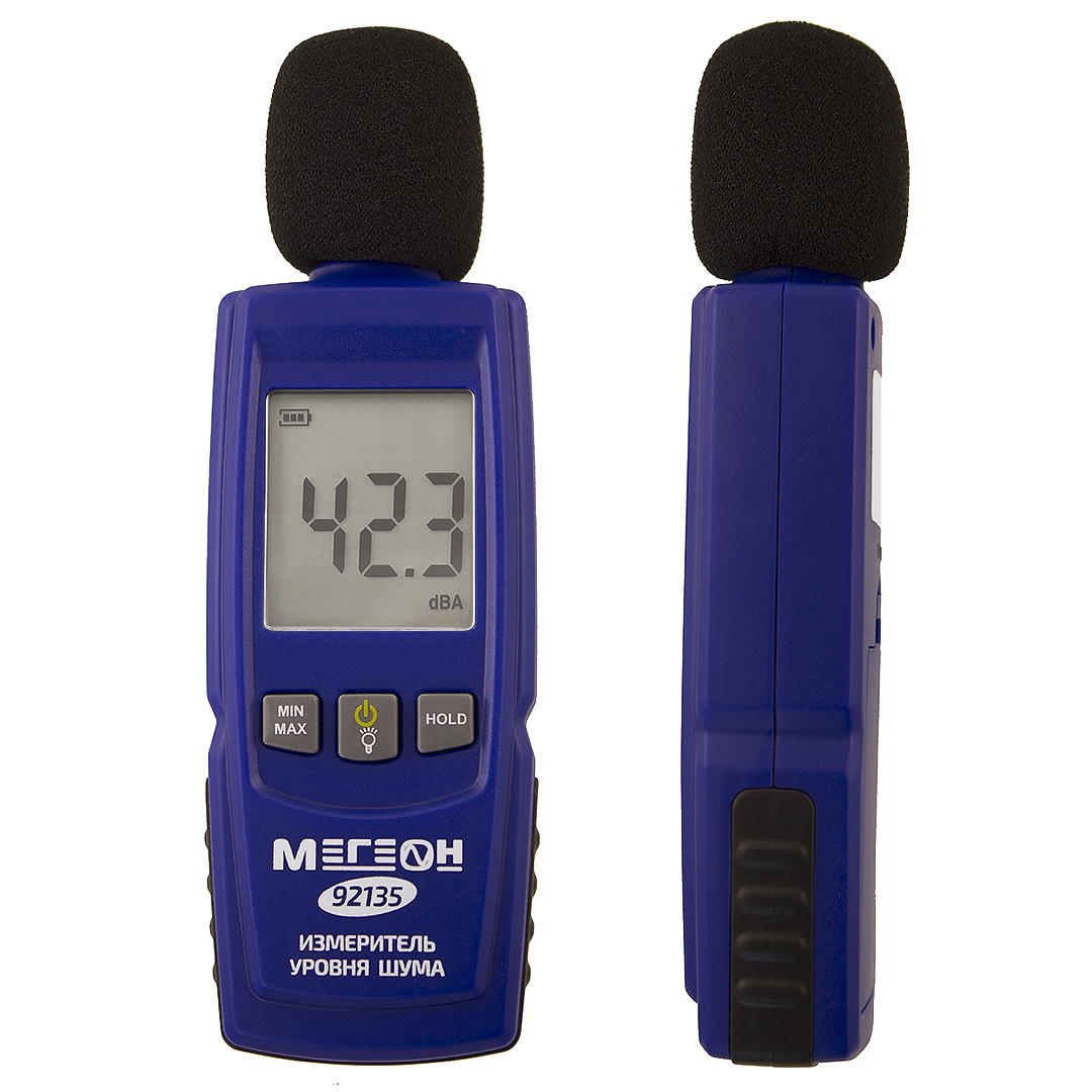 МЕГЕОН 92135 — портативный цифровой шумомер, оснащенный большим, хорошо читаемым ЖК-дисплеем с подсветкой. Прибор применим для измерения шума, профилактики различных шумов окружающей среды, включая измерение шума в различных местах, таких, как помещения, офисы, школы, дороги, дома и другие места. Благодаря своим достоинствам может применяться для тестирования звукового оборудования. Прибор даёт возможность измерять уровень звуковой нагрузки в пределах 30...130 дБ и имеет взвешивающий фильтр типа "А", который лучше всего подходит при замерах уровня шума в жилых зонах, транспорте или при аттестации рабочих мест с возможностью замера максимальных и минимальных значений. Все элементы управления находятся на передней панели, а на задней стенке расположено универсальное крепление для штатива. Изделие по достоинству оценят любители и профессионалы.